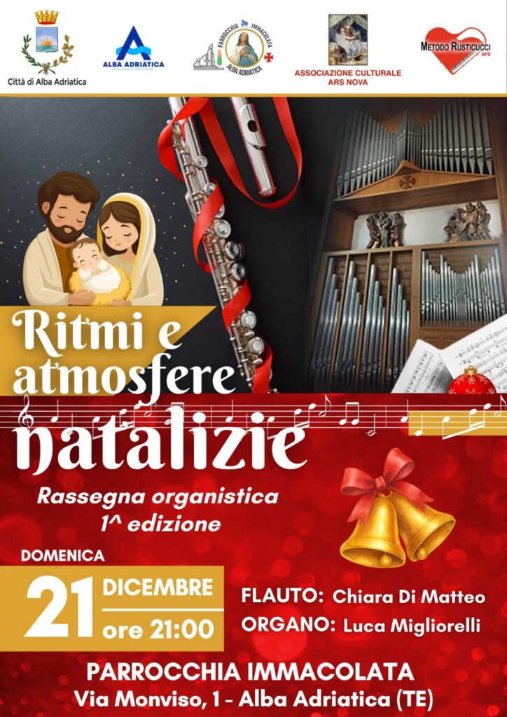Domenica 21 dicembre alle ore 21:00, la musica diventa racconto del Natale con “Ritmi e atmosfere natalizie”, la rassegna organistica che inaugura la sua prima edizione ad Alba Adriatica.